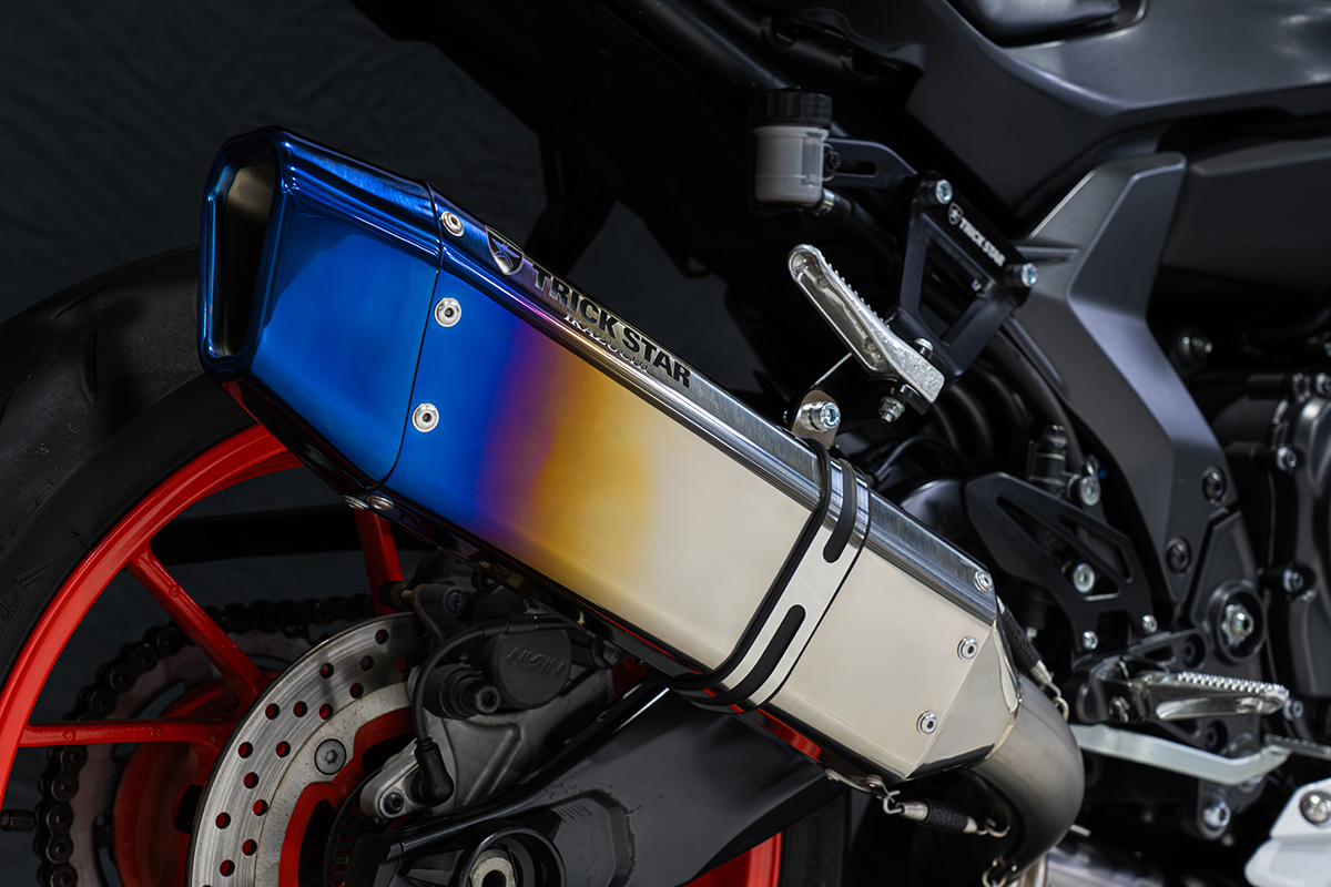 TRICKSTARがこれまでレースで培った全てを集約し具現化したブランド最高性能サイレンサーのIKAZUCHIを採用
