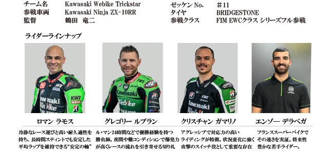 Team Kawasaki Webike TRICKSTAR(以下KWT)は、2026年FIM世界耐久ロードレース選手権