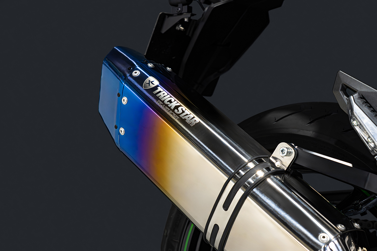 TRICKSTARがこれまでレースで培った全てを集約し具現化したブランド最高性能サイレンサーのIKAZUCHIを採用